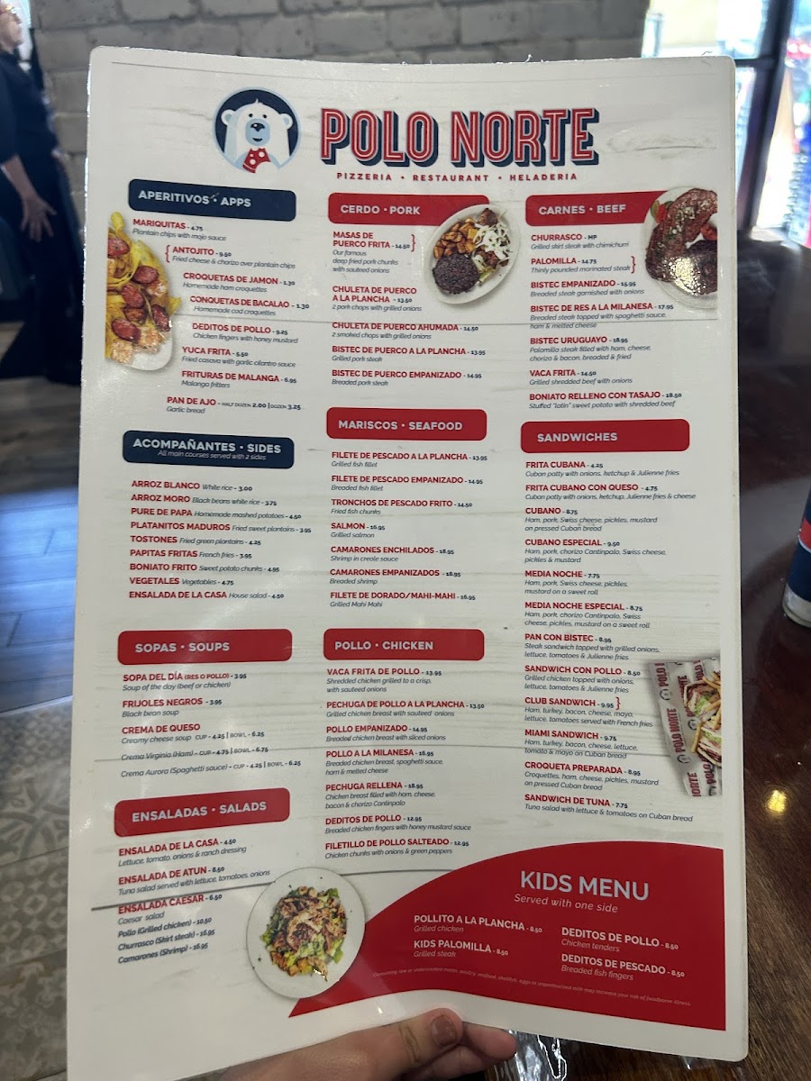 Accompany your meal with refreshing batidos: Mamey, Mango, or Banana, each priced at $5.70, creating a perfect end to a delicious dining experience. The warm service and inviting ambiance make Polo Norte a place to savor every bite.